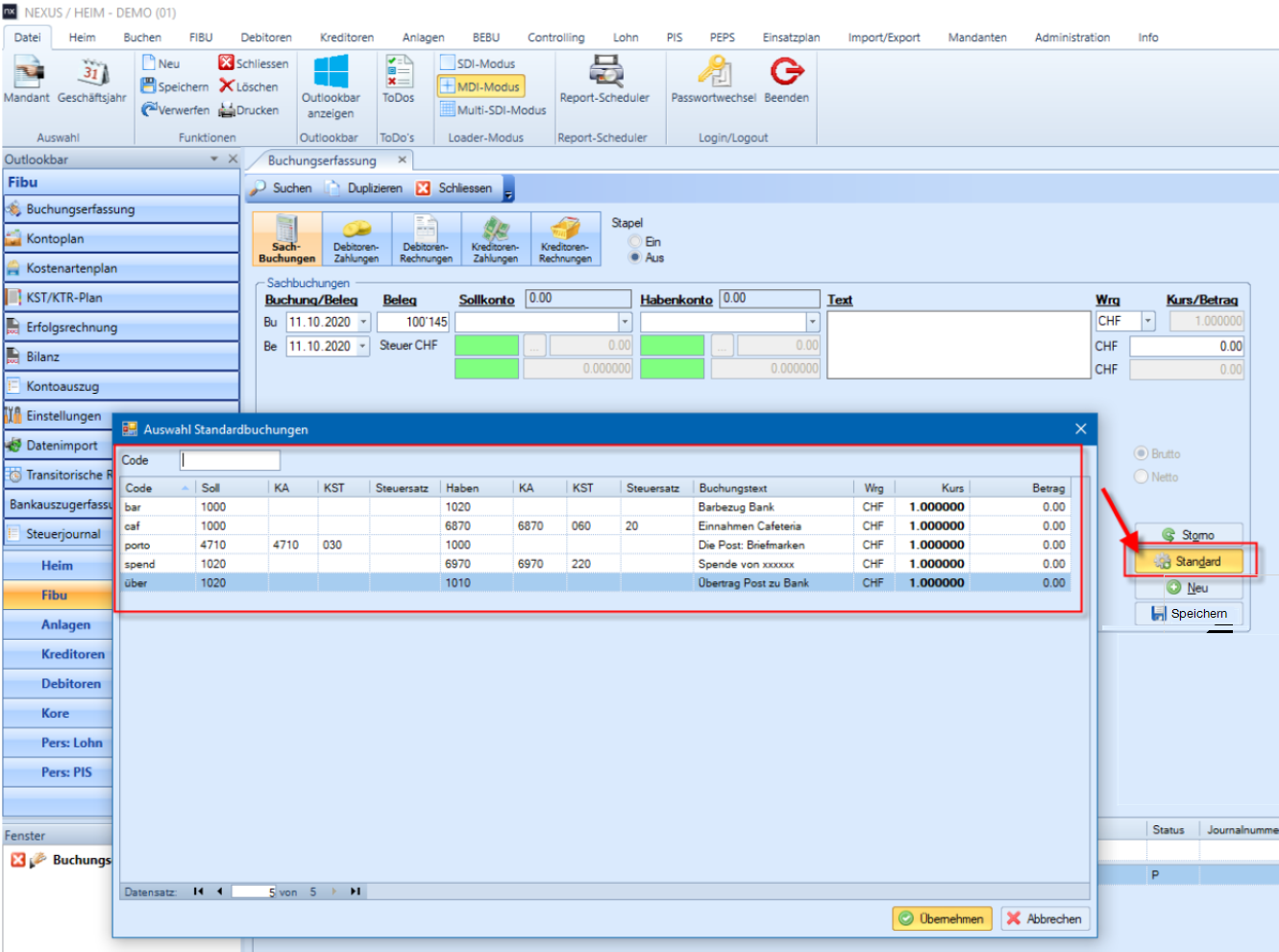 „Standard“ aufgerufen und als Vorlage übernommen werden - Anleitung NEXUS / FINANZ Buchungserfassung