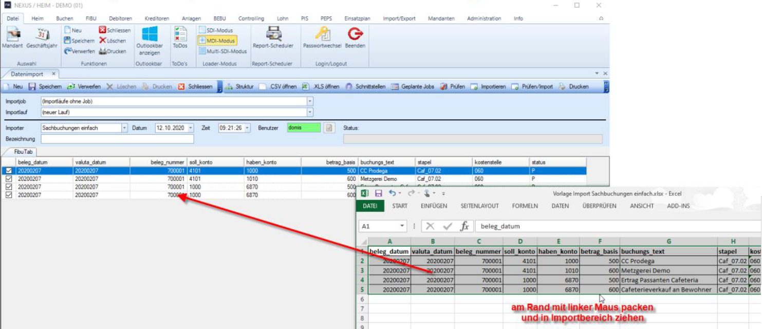 - Sachbuchungen ab z. B. Excel-Datei können sehr einfach importiert werden