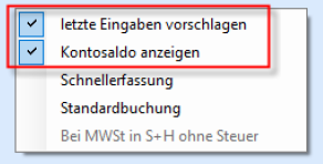 - Unterkapitel Anzeige Kontensaldo in Buchungsmaske (mittels rechter Maustaste)