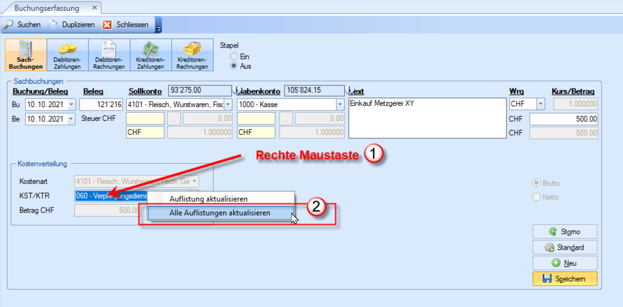 - Unterkapitel Letzte Buchung anzeigen (mittels rechter Maustaste)