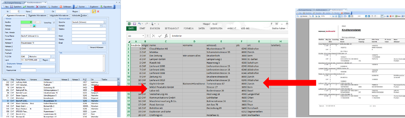 Aus den Datengrids und aus den Auswertungen können Daten durch Halten mit linker Maustaste nach Excel gezogen werden.