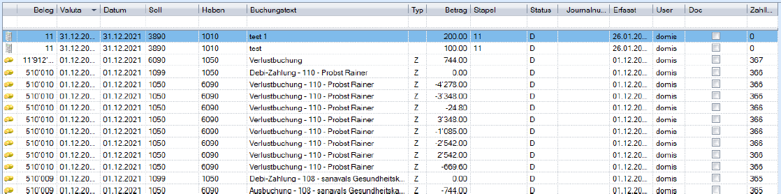 | Buchungstext | z.B. Test* | Alle Belege mit Test im Text |