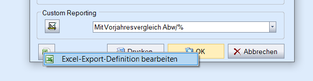 In einigen Reports können über den Button mit dem EXCEL-Symbol direkt die Daten als EXCEL-Datei gespeichert ohne vorher den Report öffnen zu müssen. Diese Funktion steht in immer mehr Reports zur Verfügung (z.B. Kontoauszug, Bilanz, Erfolgsrechnung, Offene-Posten- und Bewegungslisten, etc.).