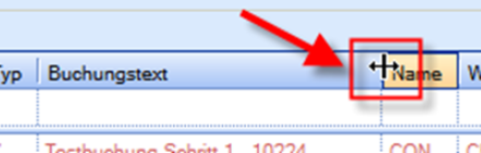 Im Grid kann die Breite jeder Spalte verändert werden. Dazu im Spaltenkopf mit dem Maus-Cursor an den Spaltenanfang oder an das Ende fahren. Es erscheint nachfolgend Symbol: