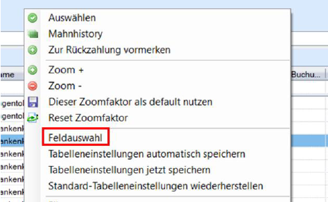 Über die Funktion „Feldauswahl“ werden alle entfernten Spalten angezeigt