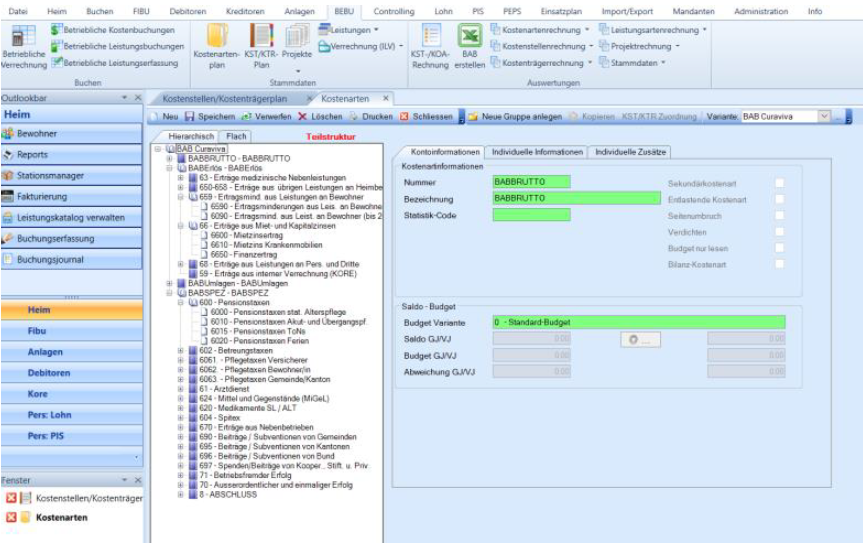 Im Bereich der Stammdaten wie z.B. Kontoplan, Kostenartenplan usw. werden die Strukturen als Baum mit Explorer-Funktionalität dargestellt. Dies erlaubt dem Anwender eine logische und grafische Darstellung der Konti.