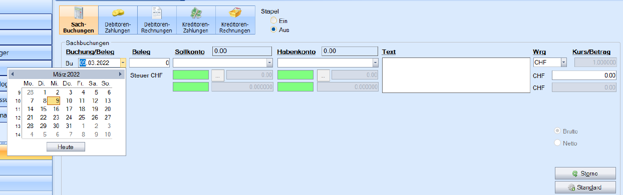 Die Eingabe des Datums kann auch direkt über ein verkürztes Eingabeformat „09032022“ erfolgen.