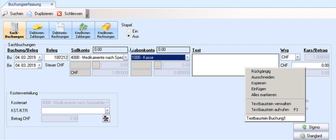 Es können Textbausteine verwaltet werden, die sich dann einfach über das Kontextmenü per Mausklick einfügen lassen.