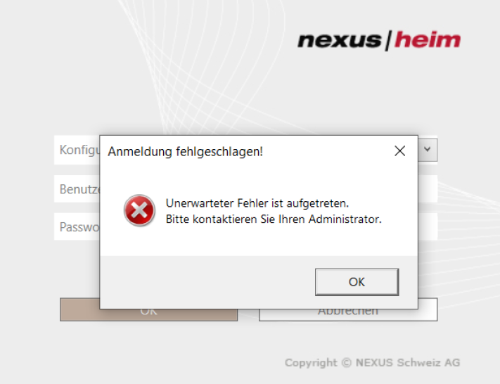 In diesem Fall muss die Berechtigung des Benutzers oder die korrekte Schreibweise des Pass-wortes überprüft werden.