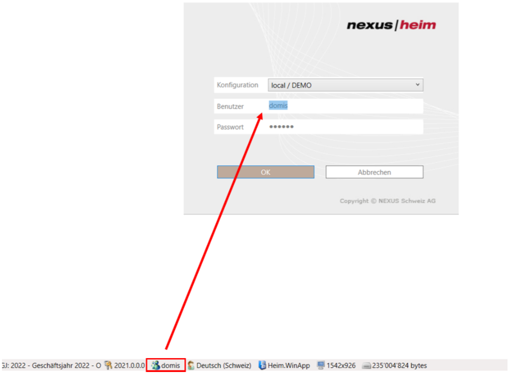 Wird im laufenden System ein Benutzerwechsel notwendig kann dies über einen Doppelklick auf den momentan angemeldeten Benutzer in der Statuszeile erfolgen: