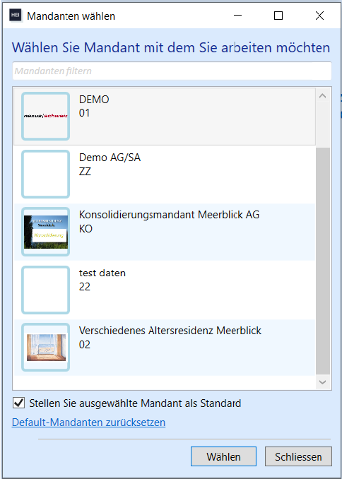 Für die Auswahl des Mandanten erscheint folgender Dialog: