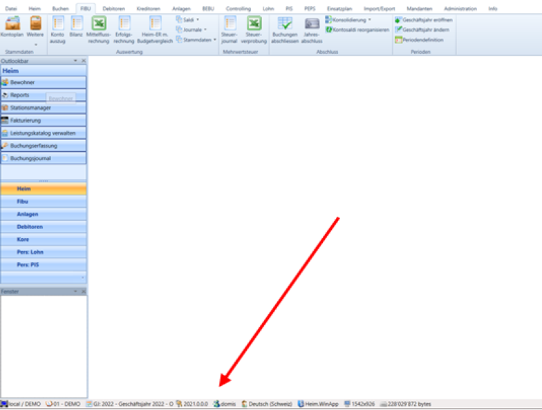 - Während der Arbeit mit der Applikation über die Statuszeile – per Doppelklick mit der Maus auf das zweite Feld „Mandant“