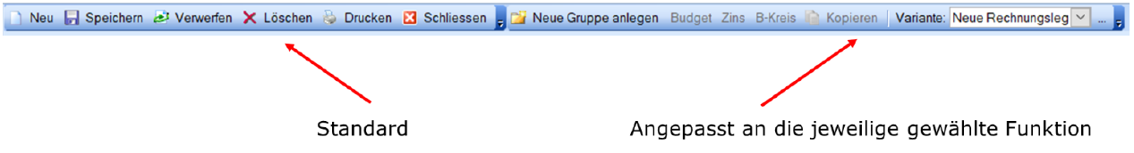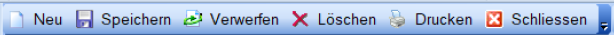 Der Toolbar werden je nach ausgewähltem Menüpunkt weitere für die jeweilige Maske gültige Buttons hinzugefügt – zum Beispiel: