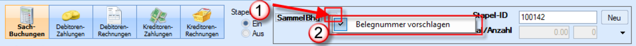 Einstellung, dass die Belegnummer in der Sammel/Stapel-Buchung nicht erhöht wird