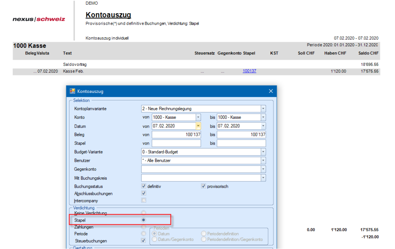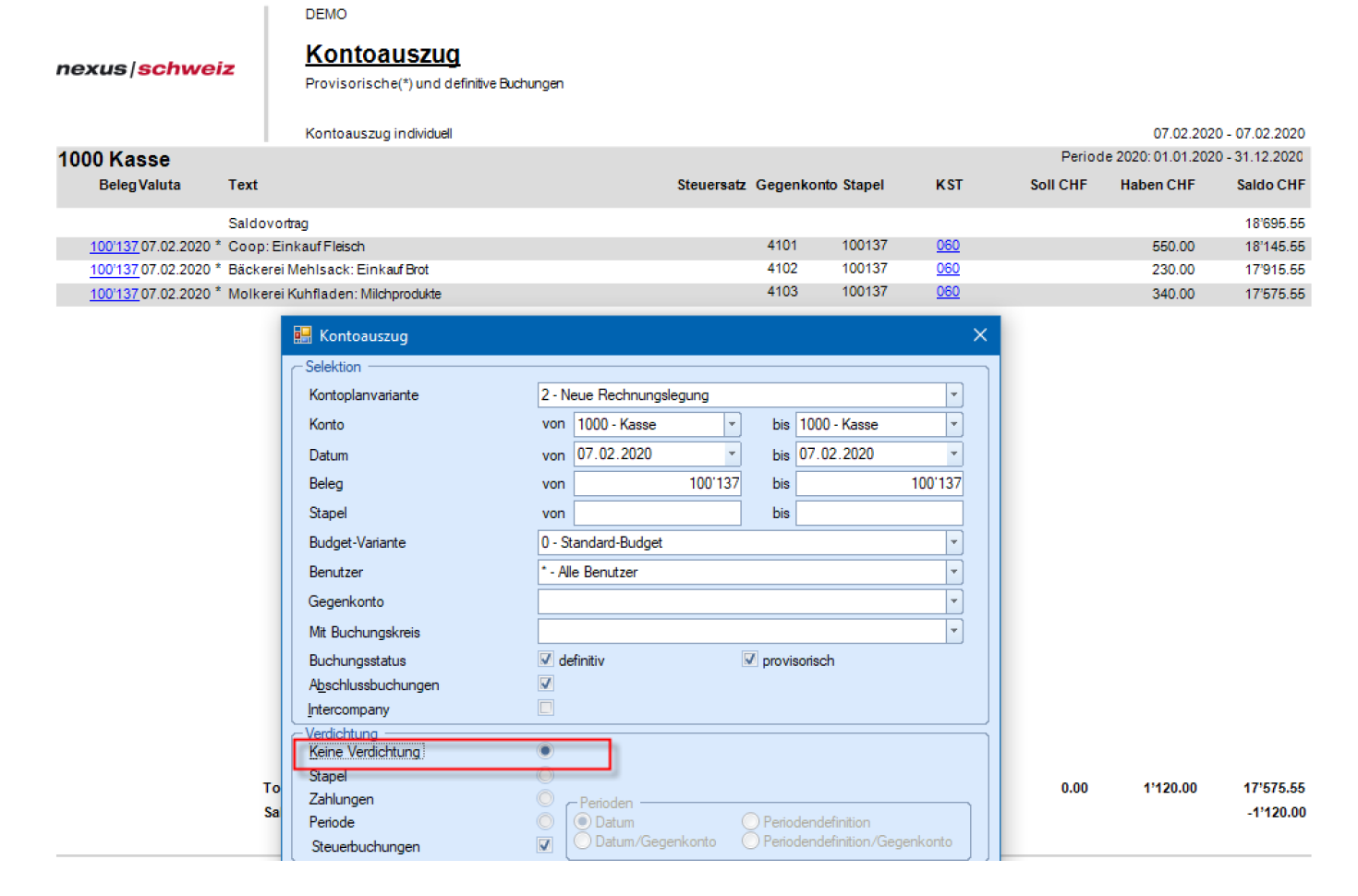 Im Kontoauszug können diese Stapel- oder Sammelbuchungen verdichtet oder unverdichtet dar-gestellt werden: