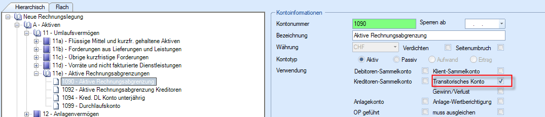 Transitorische Rückbuchungen bei Markierung im Kontoplan