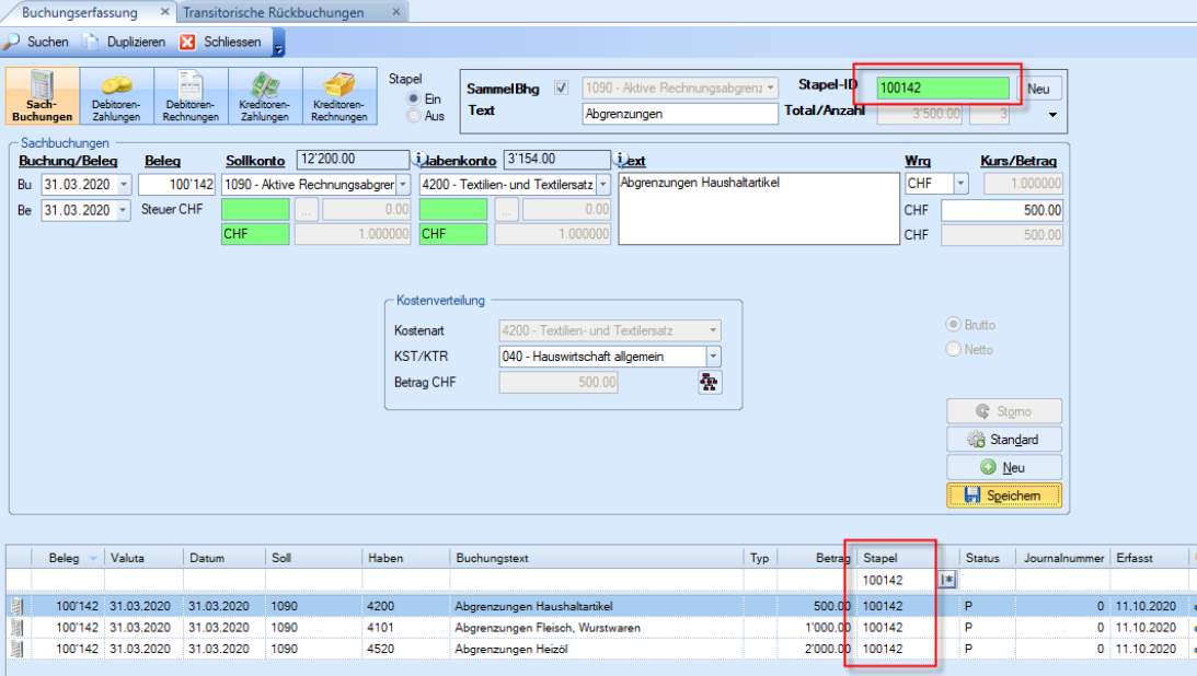 Mehrere Buchungen werden mittels der Stapel-ID zusammen gehalten.