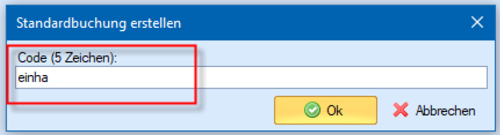 Die Ablage erfolgt unter einem 5stelligen Code, der der besseren Übersicht wegen möglichst sprechend sein sollte.