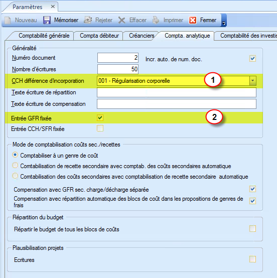 - Dans la fonction Finance\Donnée de base\Comptabilité analytique\Pland des CCH avec le bouton „GFR"