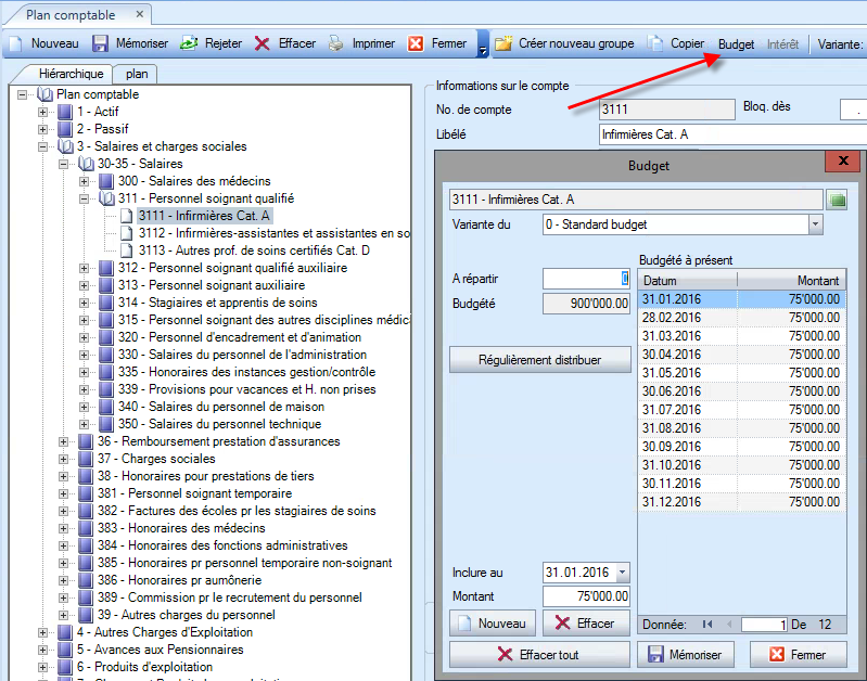 Il est possible de saisir le budget dans le plan comptablw financier.
