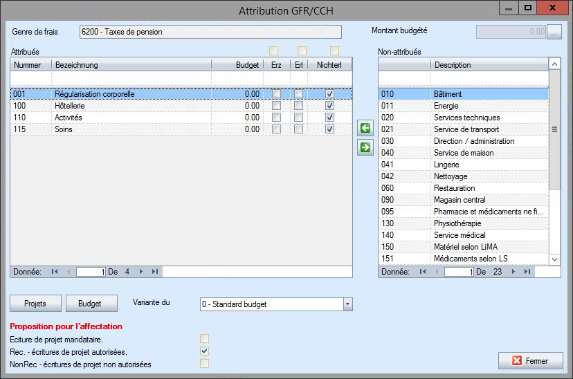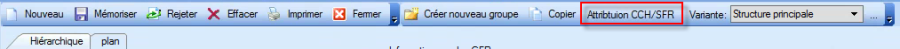 - Dans la fonction Finance\Donnée de base\Comptabilité analytique\Plan des GFR avec le bouton „Attribution CCH/SFR"