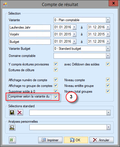 Remarque 8 : Si un certain nombre de comptes compressé au bilan ou au P&P doivent être affichés, cela peut être réglé comme suit :