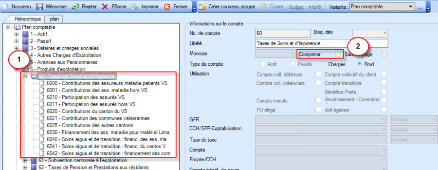 - Créer dans le plan comptable un groupe et insérer les comptes compressés.