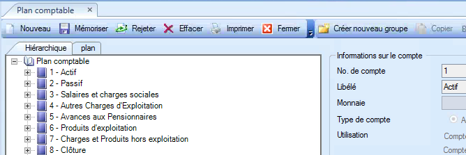 Dans cette fenêtre, le plan comptable initial peut être modifié et mis à jour si nécessaire.