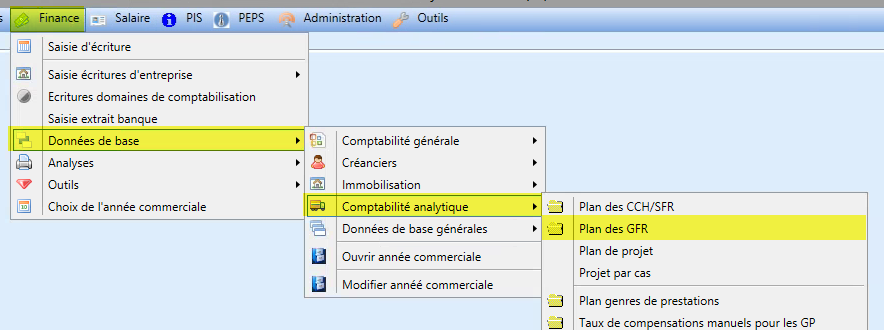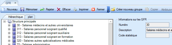 - Finance\Données de base\Comptabilité analytique\Plan des GFR