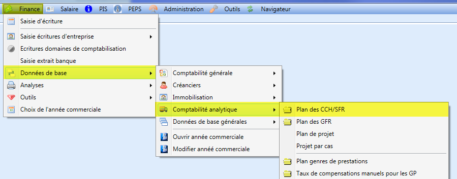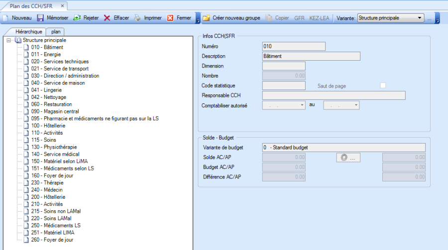 - Finance\Données de base\Comptabilité analytique\Plan des CCH/SFR