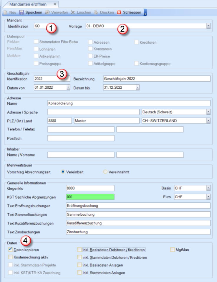 Konsolidierungsmandant eröffnen
