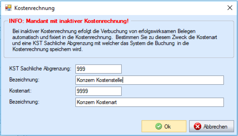 • Die Angaben zu Konzern Kostenstelle und Konzern Kostenart ausfüllen