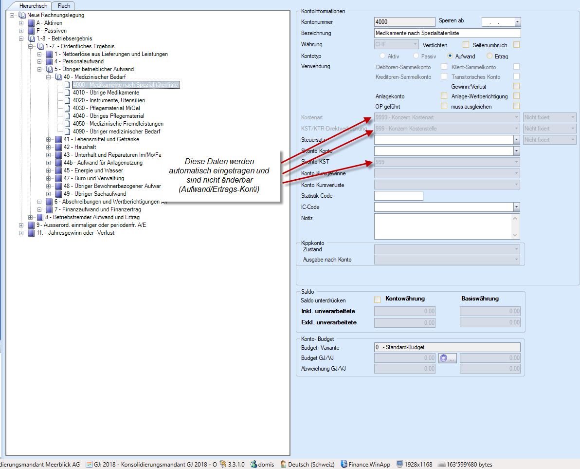 Im Fibu Kontoplan bitte nun den Kontoplan des Konzerns anpassen/einrichten.
