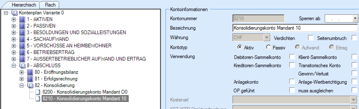 Konsolidierungskonto in der Konzernfirma eröffnen