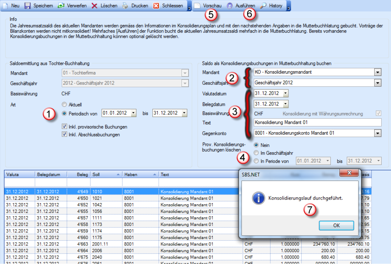 Hinweis: Bitte beachten Sie, dass die unter Kapitel 2 aufgeführten Punkte vor dem Durchführen der Kon-solidierung korrekt eingerichtet sind.