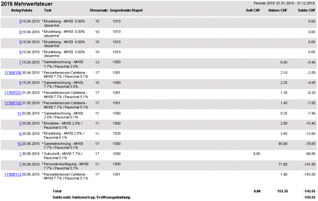 Kontrolle Buchungen der MwSt-pflichtigen Konti