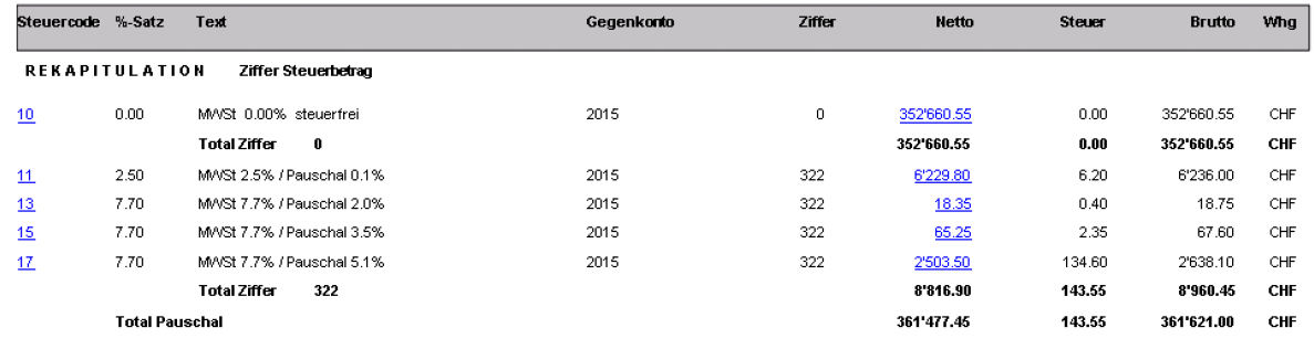 - Es werden die errechneten und verbuchten Steuerbeträge angezeigt
