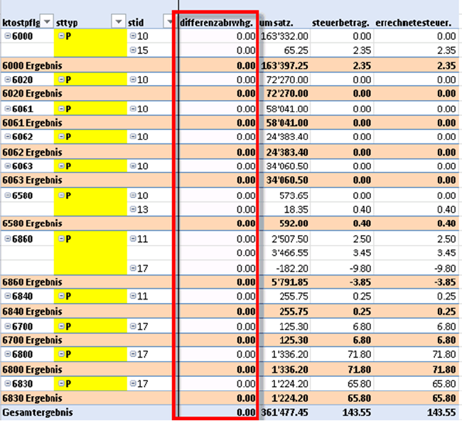 6. Kontrollieren MwSt-Sätze mit Umsatz und gebuchter Steuer