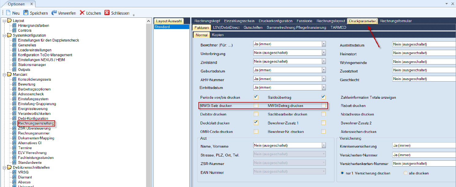 2. Anwählen Druckparameter und aktivieren MwSt drucken