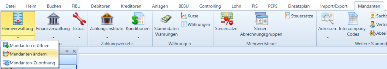 Menüpunkt Mandanten / Heimverwaltung / Mandanten ändern