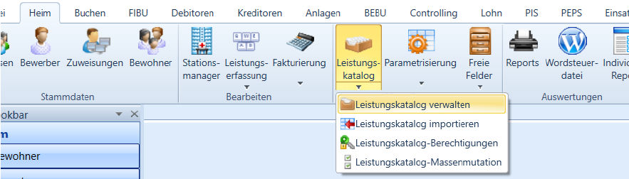 Menüpunkt Heim / Leistungskatalog / Leistungskatalog verwalten