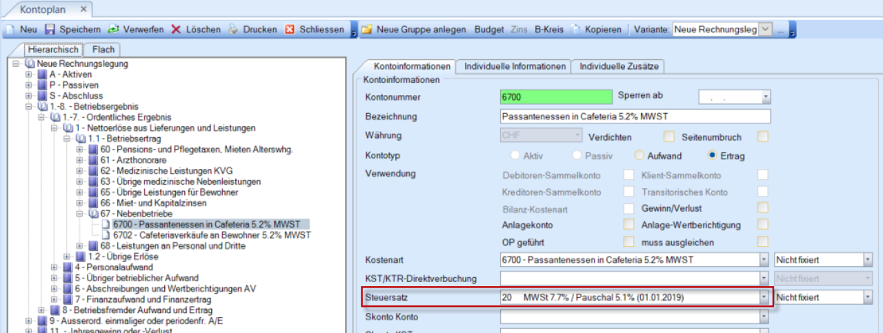 Mit Hilfe einer MwSt-Strukturvariante (Teilstruktur), in welcher nur die MwSt-pflichtigen Konti geführt werden, können die entsprechenden Konti schnell und zuverlässig ausgewählt und ausgewertet werden.