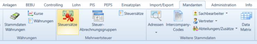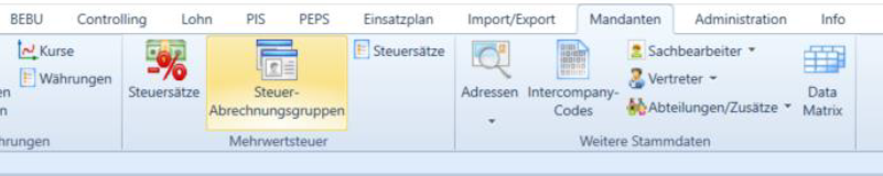 Menüpunkt Mandanten / Steuer-Abrechnungsgruppen