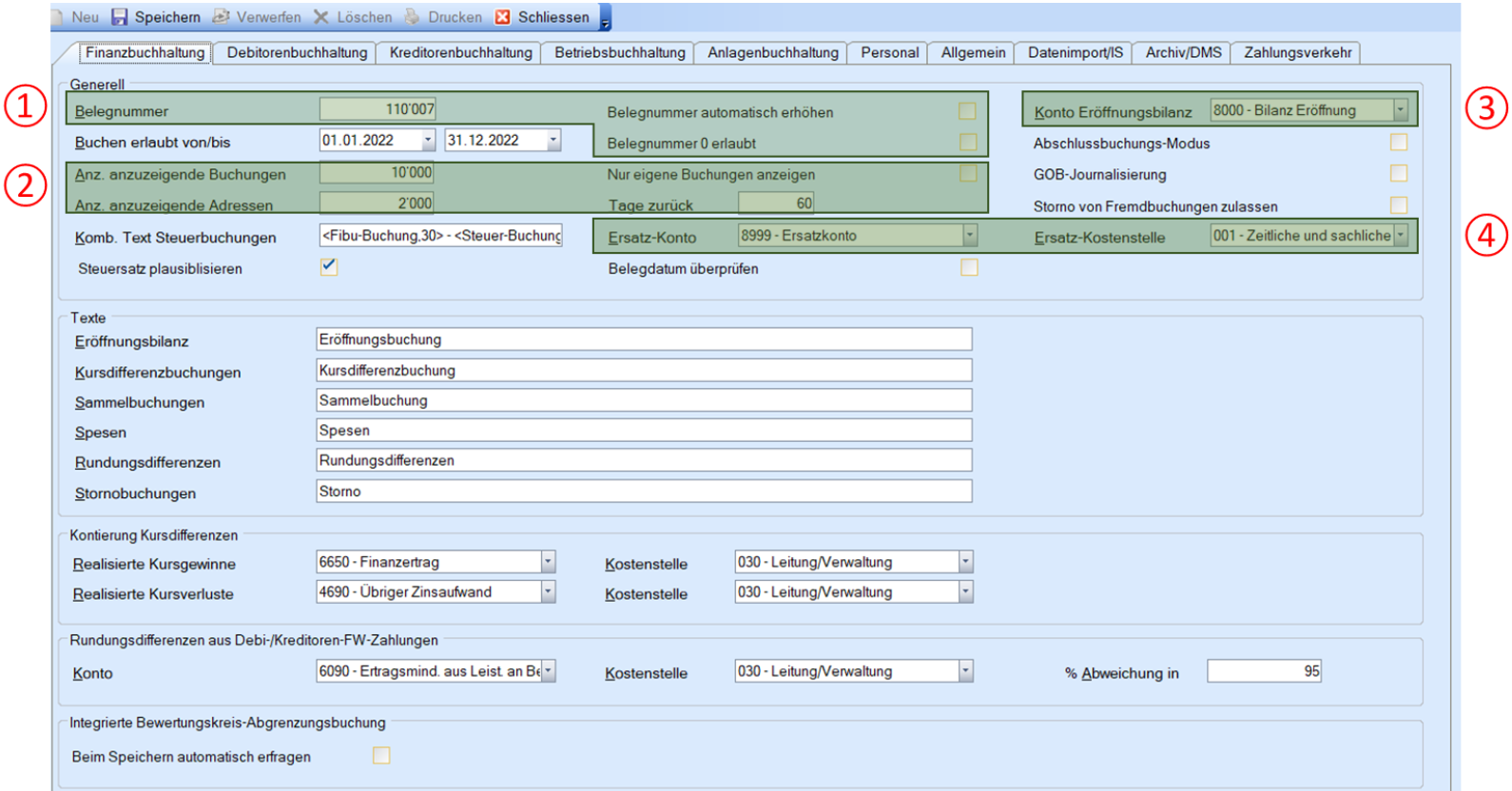 Details zu Einstellungen Register Finanzbuchhaltung siehe Einstellungen Finanzbuchhaltung
