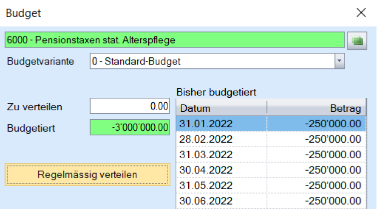 • Mit «Regelmässig verteilen» wird das Jahresbudget monatsweise aufgeteilt
