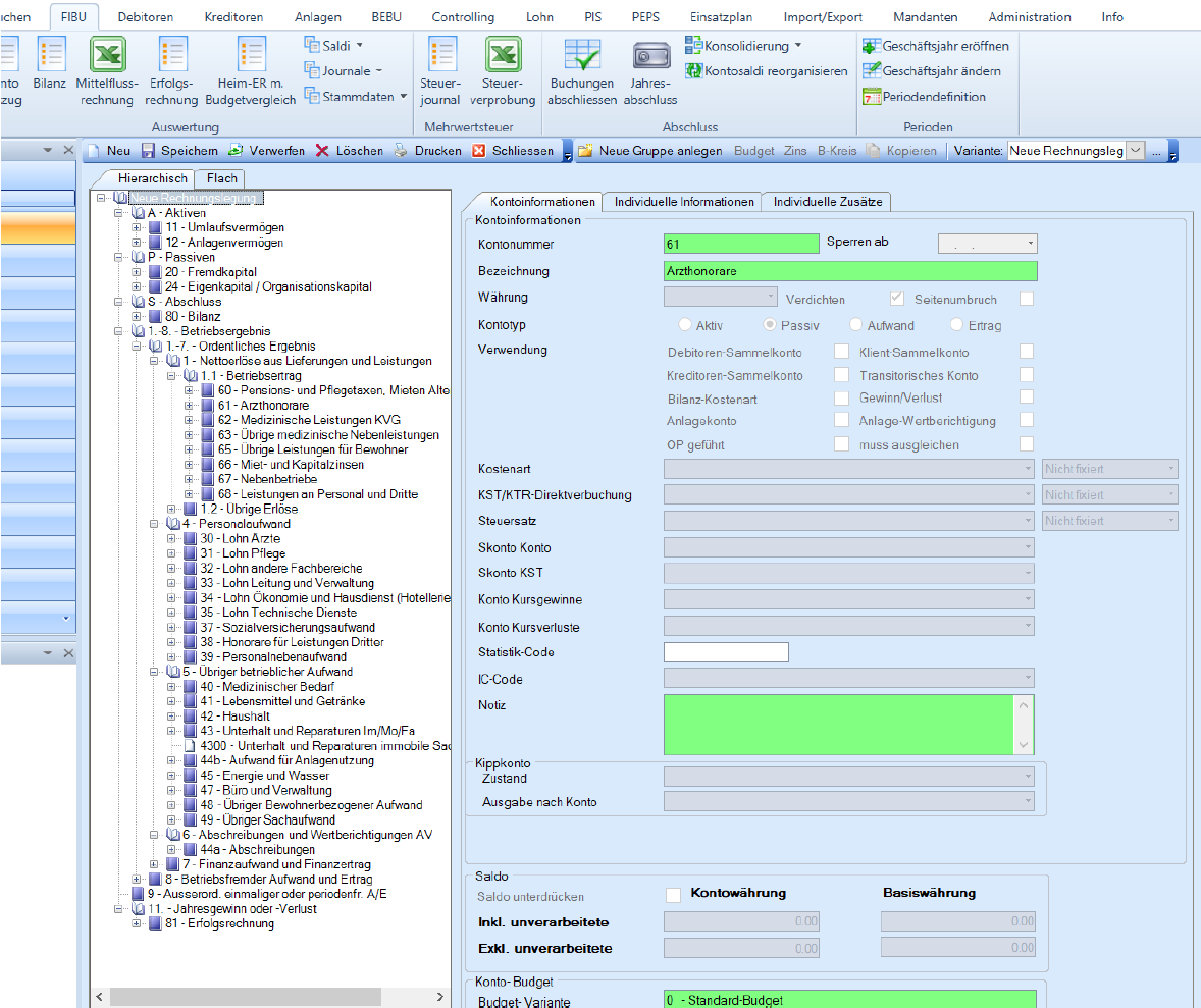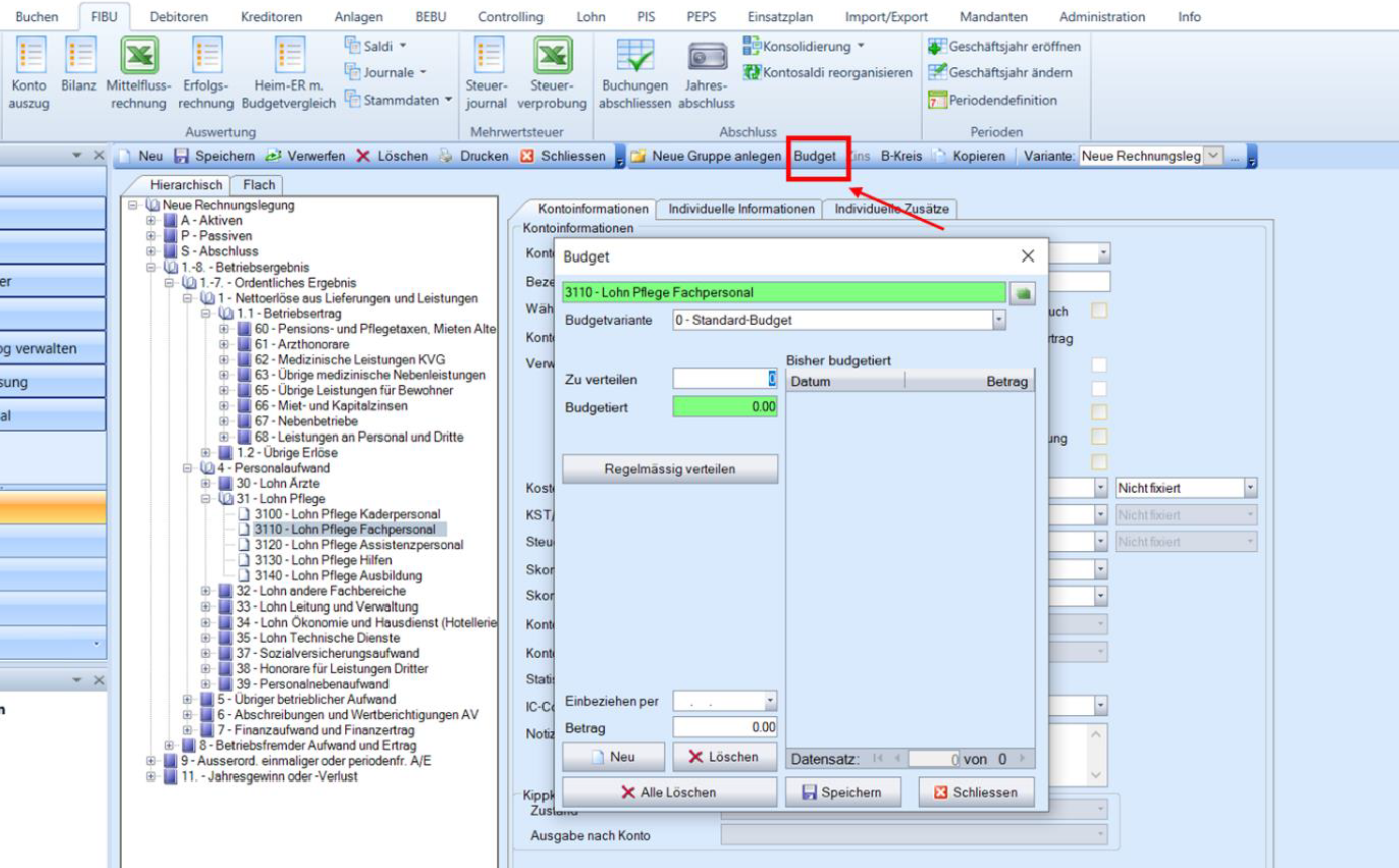 Im Fibu-Kontoplan können Sie das Fibu-Budget erfassen.