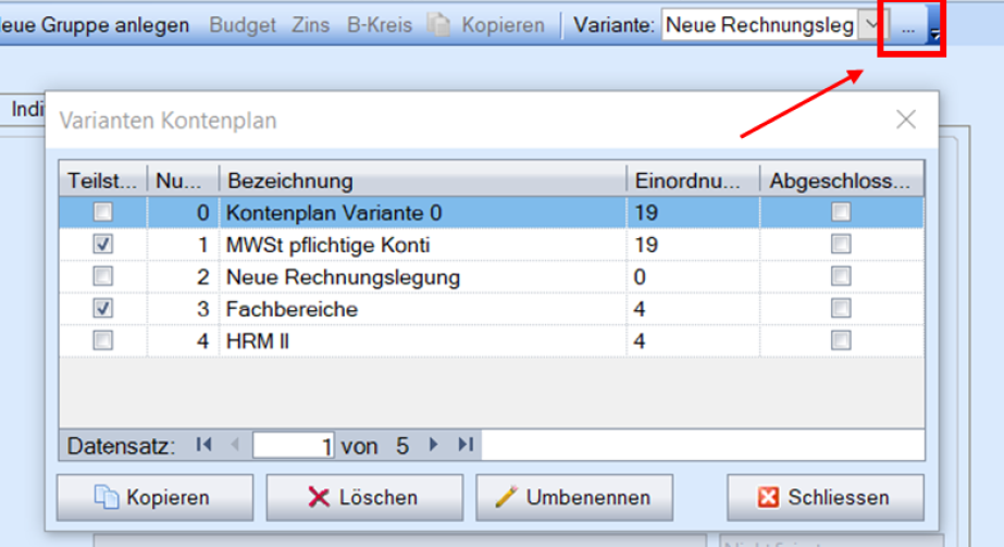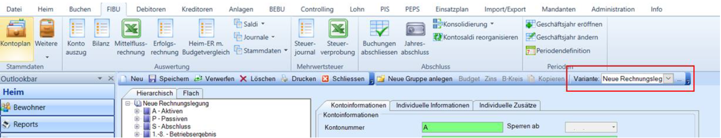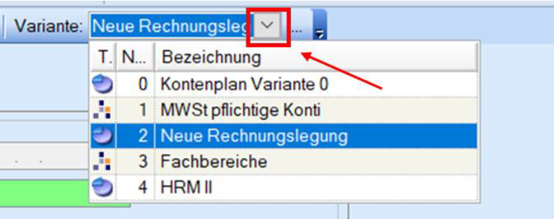 Menüpunkt FIBU / Kontoplan / (bei Variante)