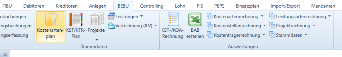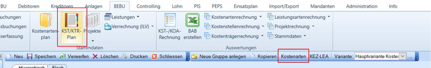 Menüpunkt BEBU / KST/KTR-Plan / Button «Kostenarten»