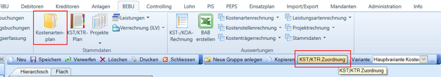Menüpunkt BEBU / Kostenartenplan / Button «KST/KTR-Zuordnung»