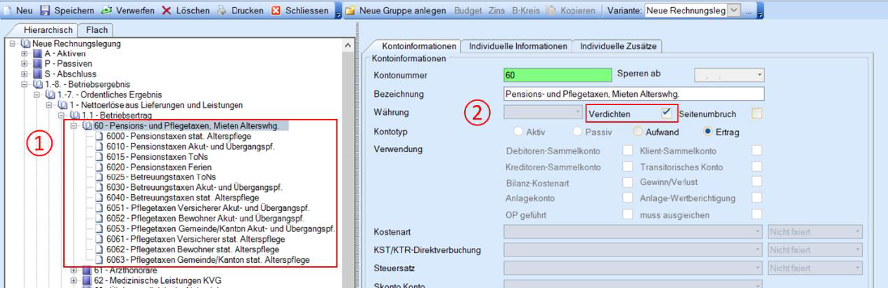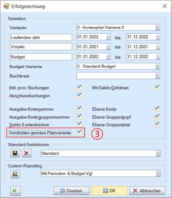 3. In der Bilanz oder in der Erfolgsrechnung kann mittels dieser Option die Verdichtung aktiviert werden